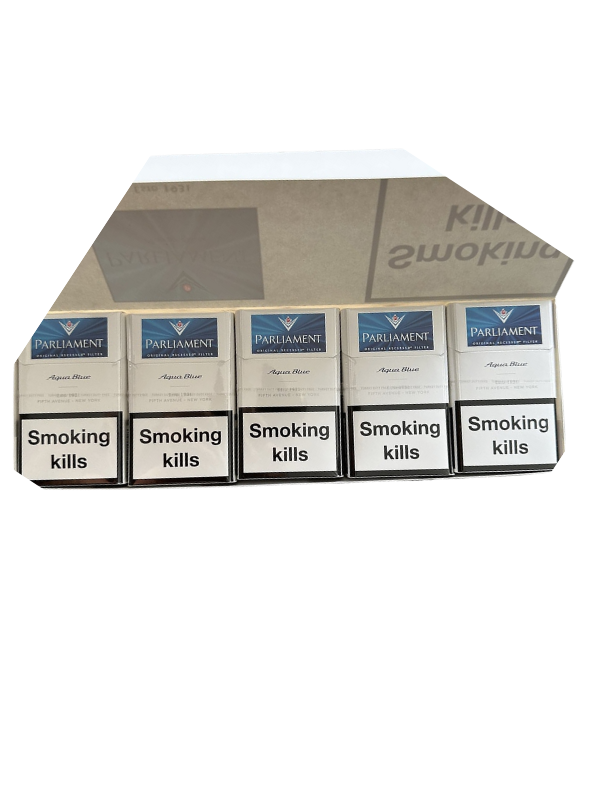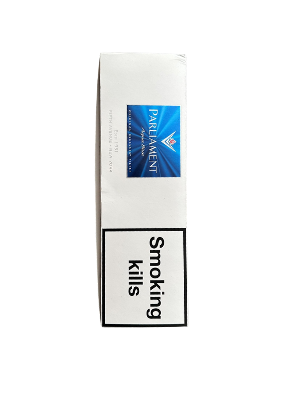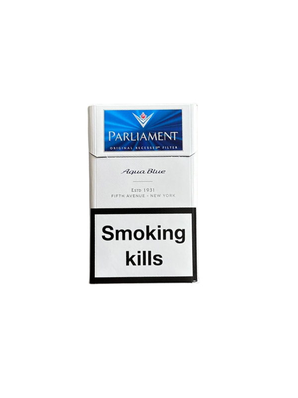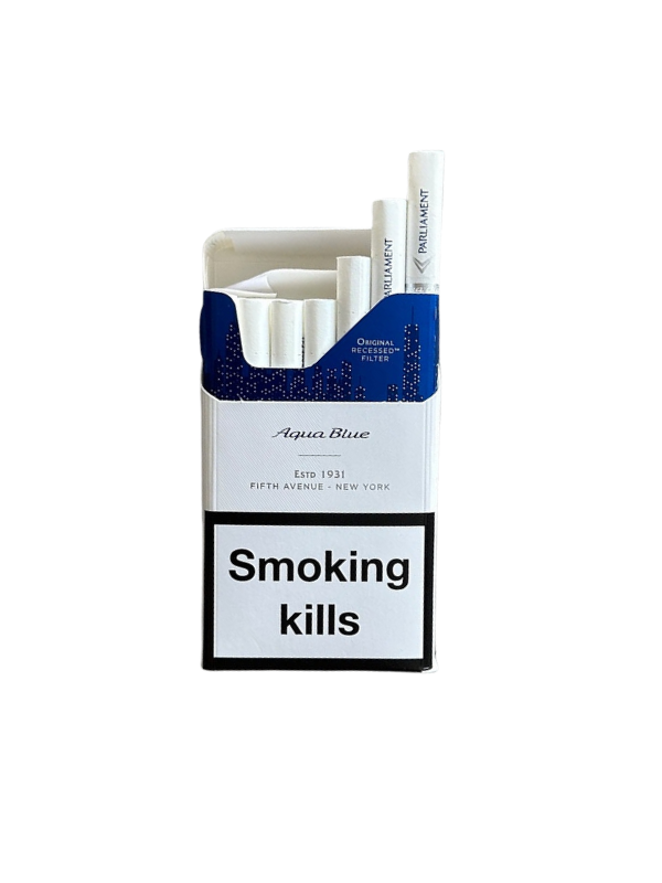 Parliament Aqua Blue cigarettes. A well-liked cigarette variety from the Parliament brand because of its mild flavor and affordable pricing.