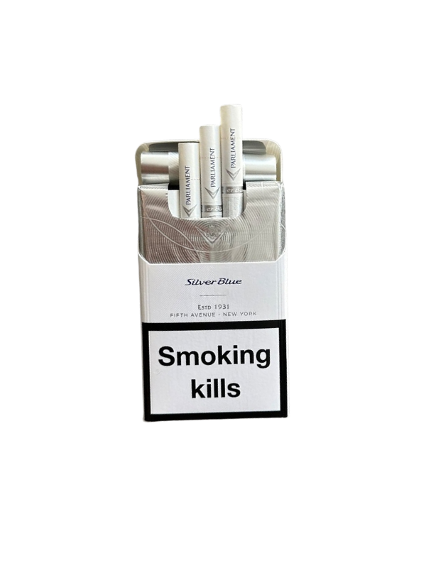 Silver Blue Parliament cigarettes. A well-liked cigarette variety from the Parliament brand because of its mild flavor and affordable pricing.
